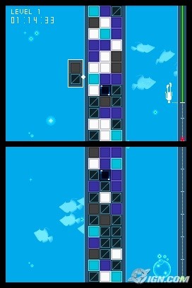 As the diver progresses he'll slowly begin to lose his air supply. The player has to refill the diver's air-supply by clearing rows of blocks quicker or finding and clearing a row of 3 special blocks that will appear randomly as the game progresses. Darkness falls from the top of the screen as time goes on too, which makes it harder to make matches.
