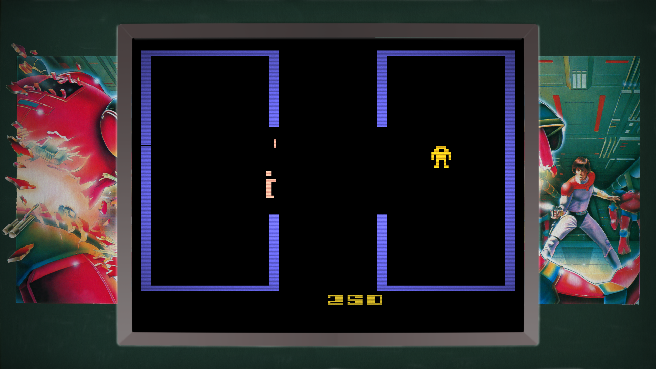 While the 2600 version of Berzerk lacks the famous speech samples of its arcade inspiration, its programmer Dan Hitchens captured the look and feel of the coin-op exceptionally well. Unlike in the arcade version, players can actually destroy the bouncing smiley face Evil Otto in certain modes.