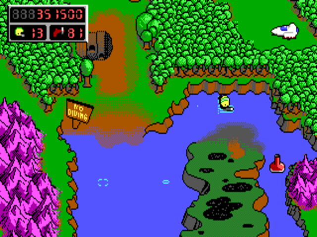 The game begins with a top-down map of the Shadowlands. This is the level select screen, where Billy can walk around and the player can choose the next level they want to enter (though some of the levels are islands located on a lake and require you to find a wetsuit if you want to reach them). On each level, Billy has to make his way to the exit. Once a level is completed, Billy ends up back on the overhead map.