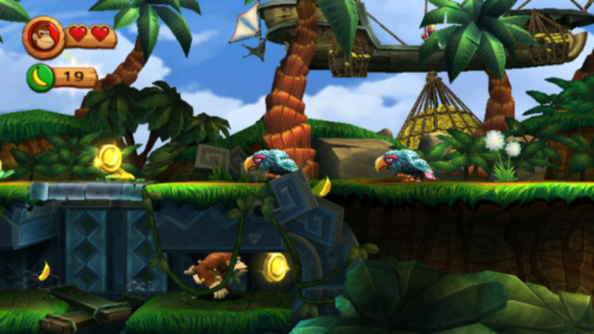 The return to the Donkey Kong series sees many familiar elements from the original saga combined with a host of new features and game play improvements. DK is once again the main playable character, while Diddy hitches a ride on his back through single player, and can be controlled by another gamer in multiplayer (replacing the old tag system). New additions include a Peanut Pop gun and a jetpack for Diddy, new hidden items to collect within each level (the classic K-O-N-G letters as well as new puzzle pieces), and upgrades for the Kongs that can be purchased within each sub-world. And of course what DKC game would be complete without the trusty mind cart levels, upgraded and given a burst of added speed.