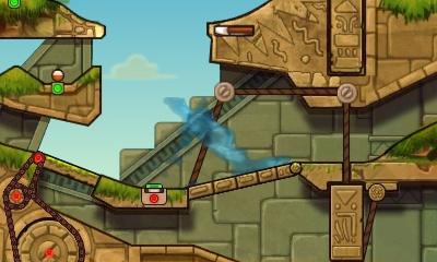 Tilt, turn and even completely rotate your Nintendo 3DS to maneuver a puddle of water—named Eddy—through a maze-like magical world. Change from liquid to a block of ice or a steam cloud to solve fun, gravity-defying puzzles and defeat Goop monsters. Some puzzles require the player to rotate their Nintendo 3DS a full 360 degrees, turning the world upside-down, to navigate through tricky tunnels and crazy contraptions. Each state of water provides the player with different play abilities, all themed to match the properties of that state. This is helpful as the ‘chapters’ of the game contain hidden secrets that encourage exploration. Discovering all the well-hidden puzzle pieces unlocks bonus “playrooms” that provide additional gameplay, and a scoring system (weighing speed vs. accomplishment) provides great re-playability. Due to the rotation of the hardware during gameplay, this game is not in 3D.