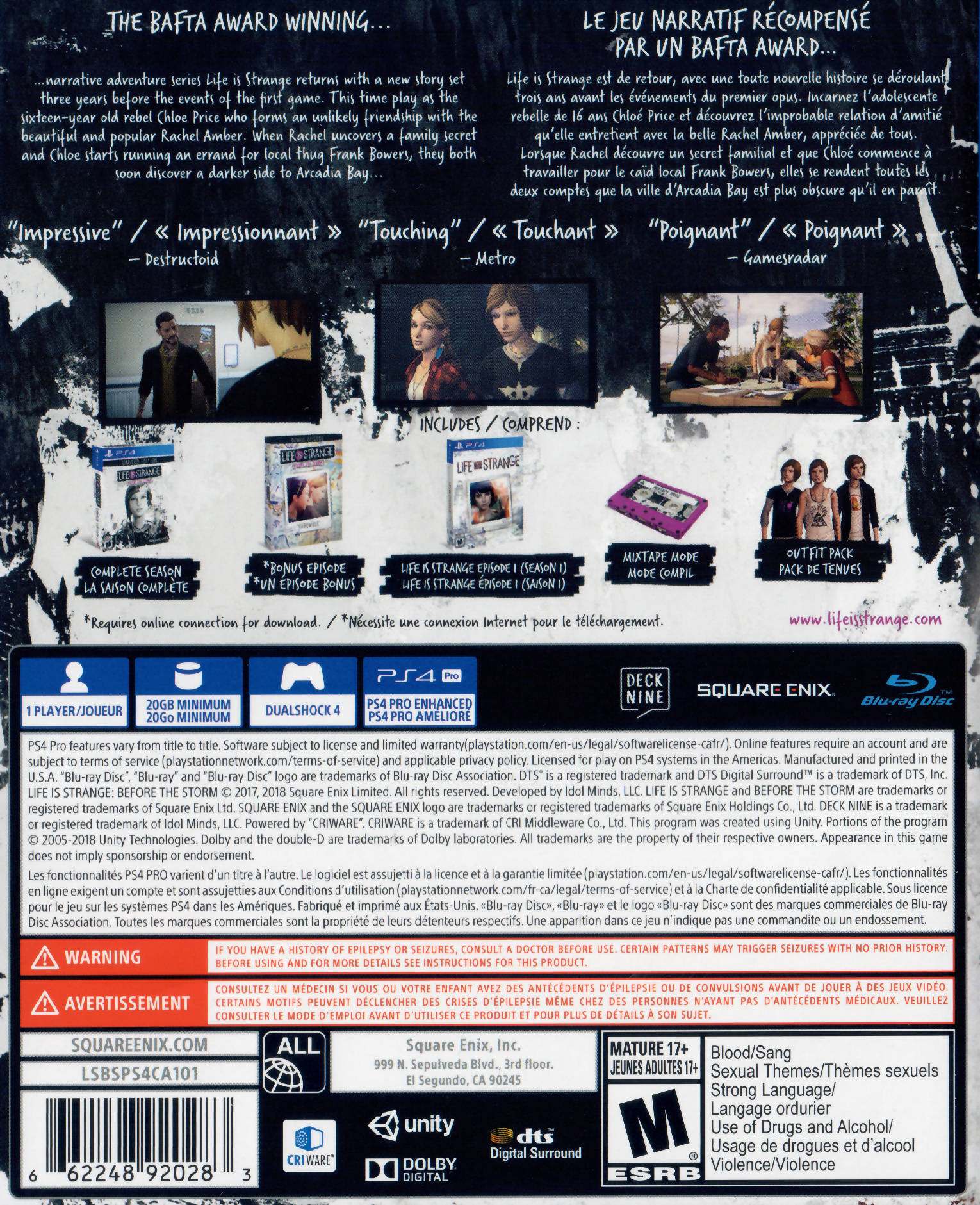 The game is set three years before the events of the first game, Life Is Strange, and it is done by a different developer. The player controls Chloe Price, a character from the first game, a teenager who lives in Arcadia Bay. It focuses on the period while Max Caulfield, the protagonist of the first game, has left for Seattle. Chloe is sixteen and the story focuses on the unlikely friendship with Rachel Amber, a popular girl who seems to be the opposite of the rebellious Chloe.