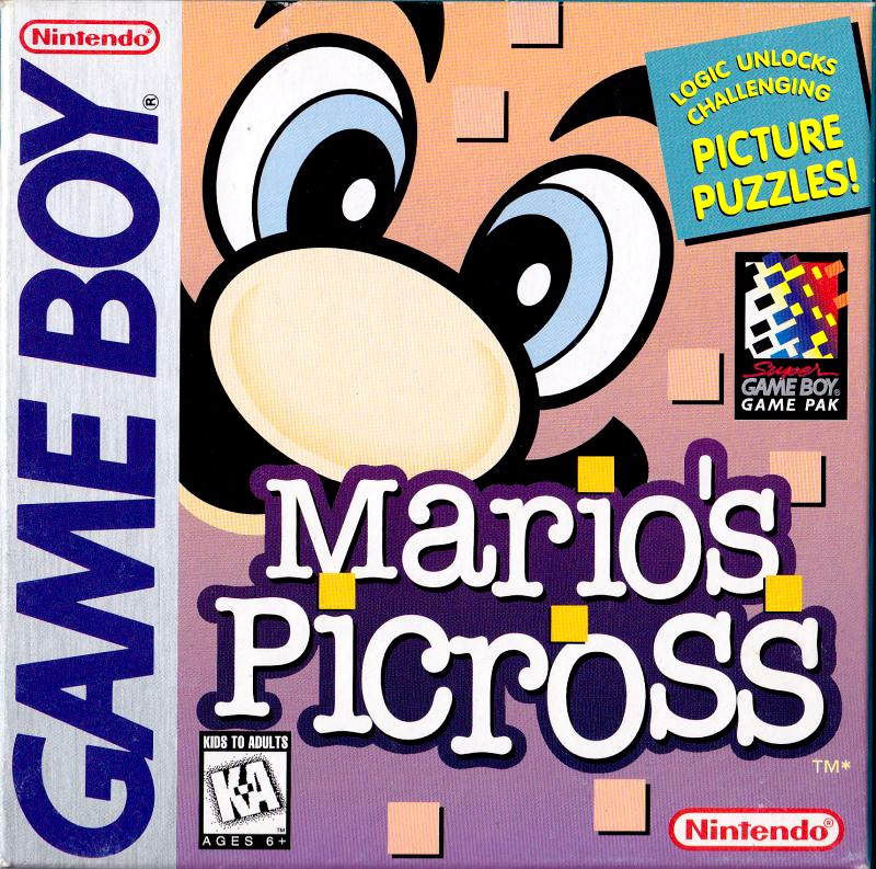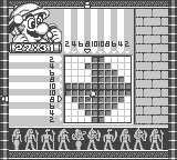 Mario's Picross (from PICture CROSSword) is Nintendo's take on Nonograms. In this game, Mario takes on the role of an archaeologist who chisels away the squares in each playfield. The result is a small picture. There are 256 different puzzles to solve, divided into four courses with increasing difficulty level.