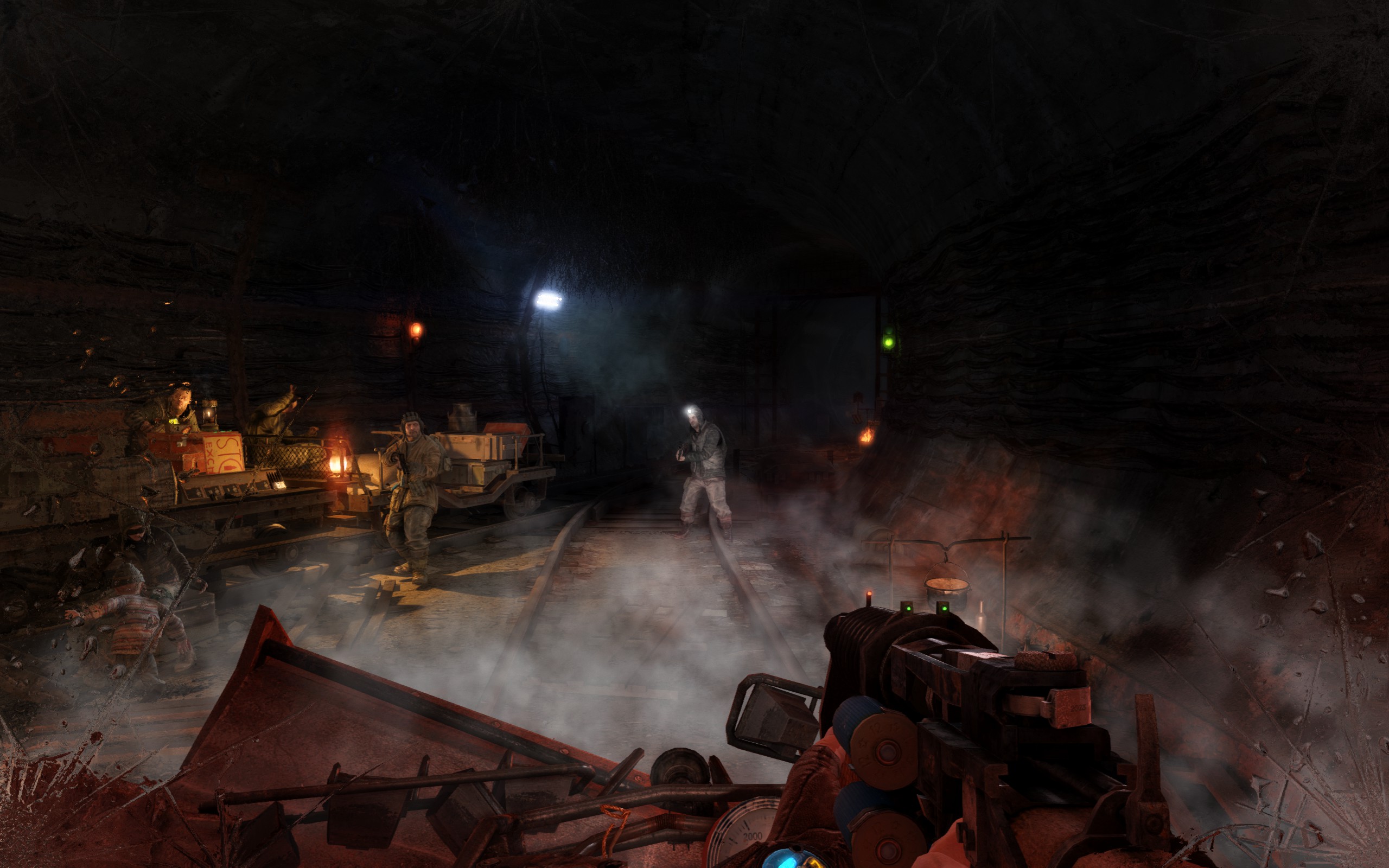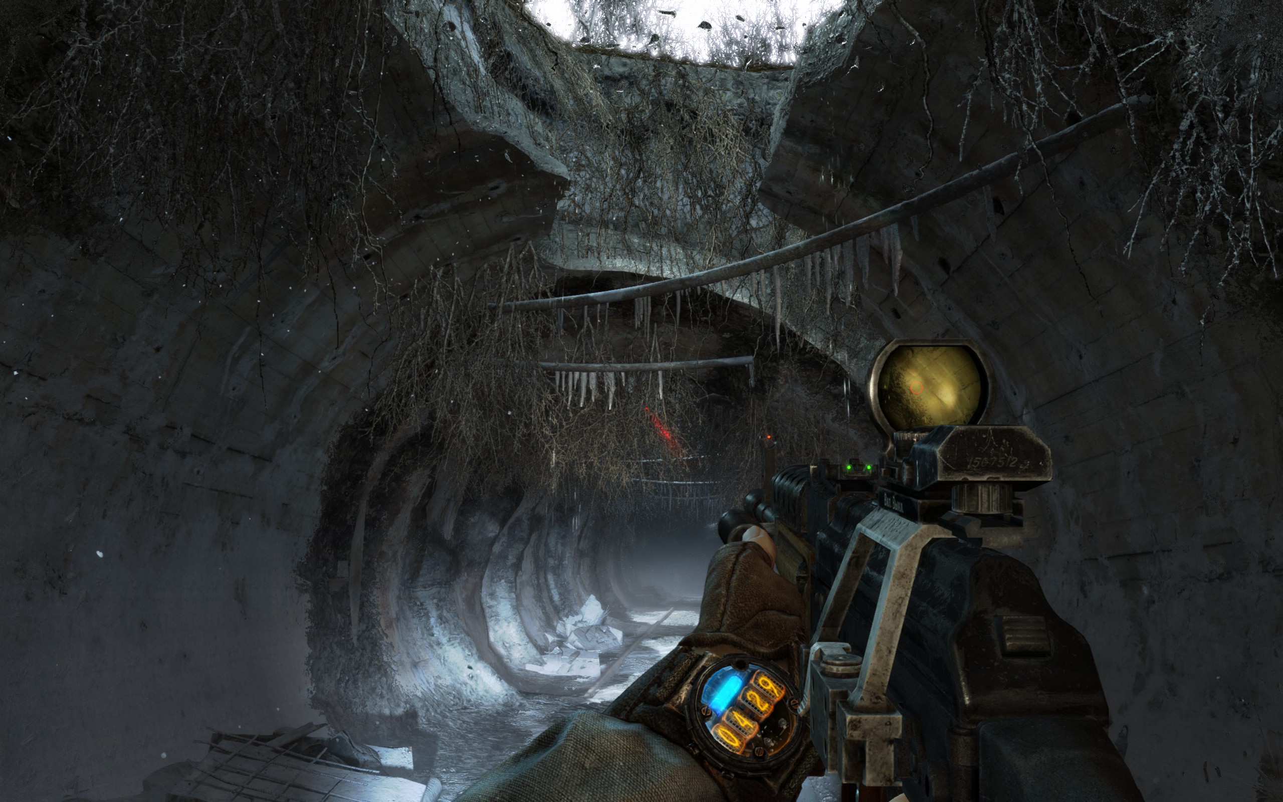 Based on the Russian novel Metro 2033 by Dmitry Glukhovsky, Metro: Last Light is a post-apocalyptic horror first-person shooter that serves as a new chapter in the Metro saga and is the sequel to Metro 2033. Like its predecessor, the game is a primarily story-driven shooter with heavy stealth elements. Artyom may carry up to three weapons at a time, however bullets are scarce and valuable to the point that higher grade bullets are, in fact, the Metro's currency. When dealing with armed opponents, stealth is encouraged and it is wise to save ammunition for the many mutant creatures encountered in combat. In many situation the player can choose between straightforward shooting and stealth, also having the option for lethal or non-lethal enemy takedowns.