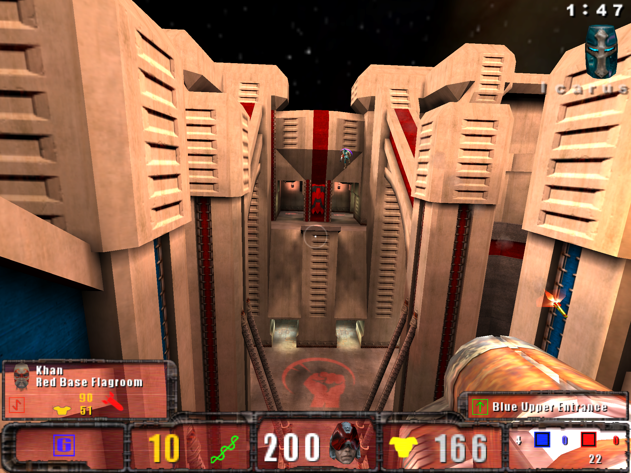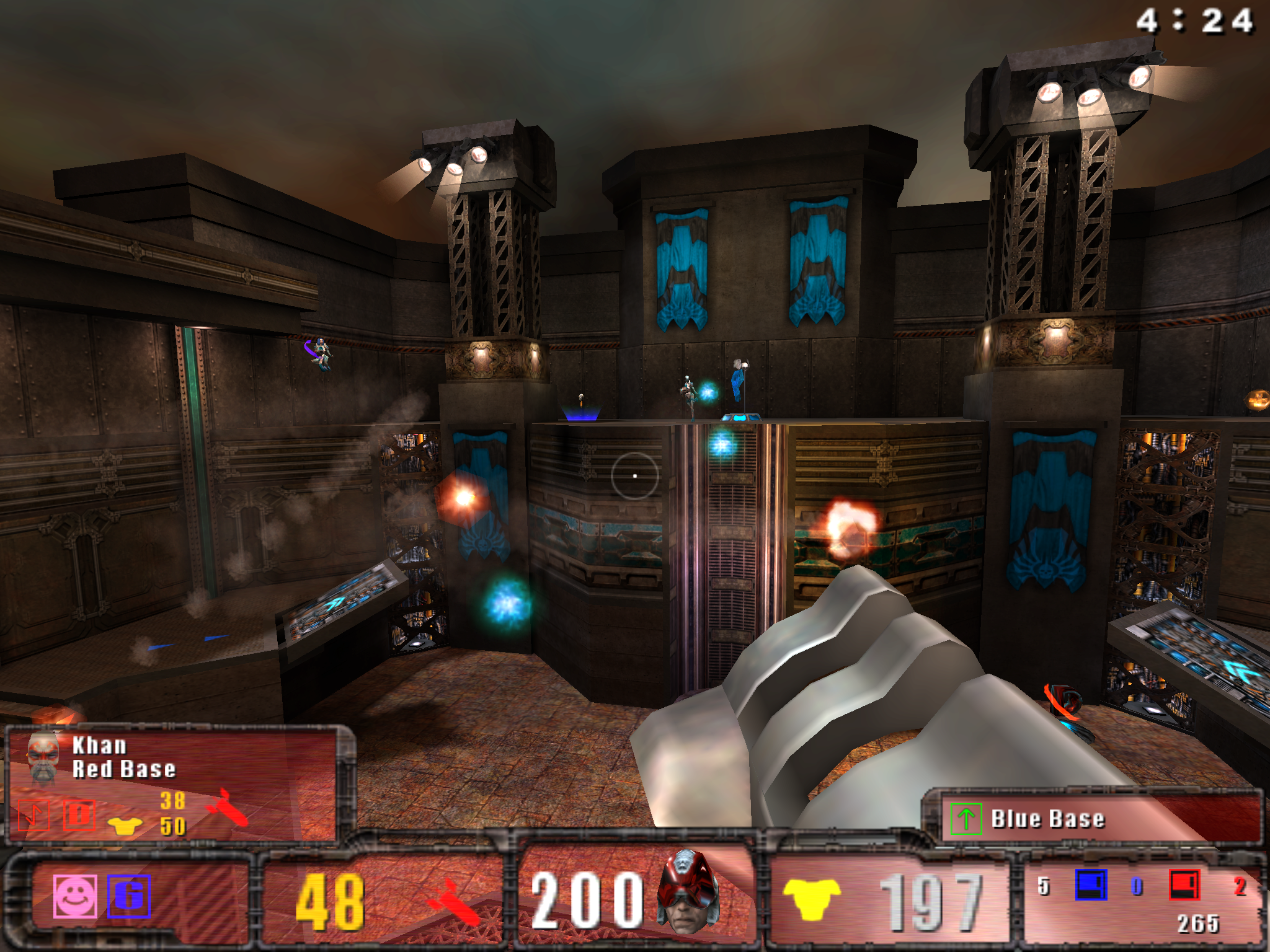 It adds a lot of multiplayer game types: Harvester, Overload and One Flag, all focused on team play. There is a selection of new power-ups aimed at introducing a class-based structure similar to Team Fortress. Three new weapons are available: a nail gun, a chain gun and a proximity mine launcher. There is also a batch of new levels, and a few graphical and sonic tweaks like the inclusion of Doppler-shift effects when rockets streak past your head. And finally there is a set of one-use items like Kamikaze (kills you in a colossal explosion, taking out anyone unfortunate to be around) and Invulnerability, which freezes you in mid-air and surrounds you with a near-impenetrable shield.