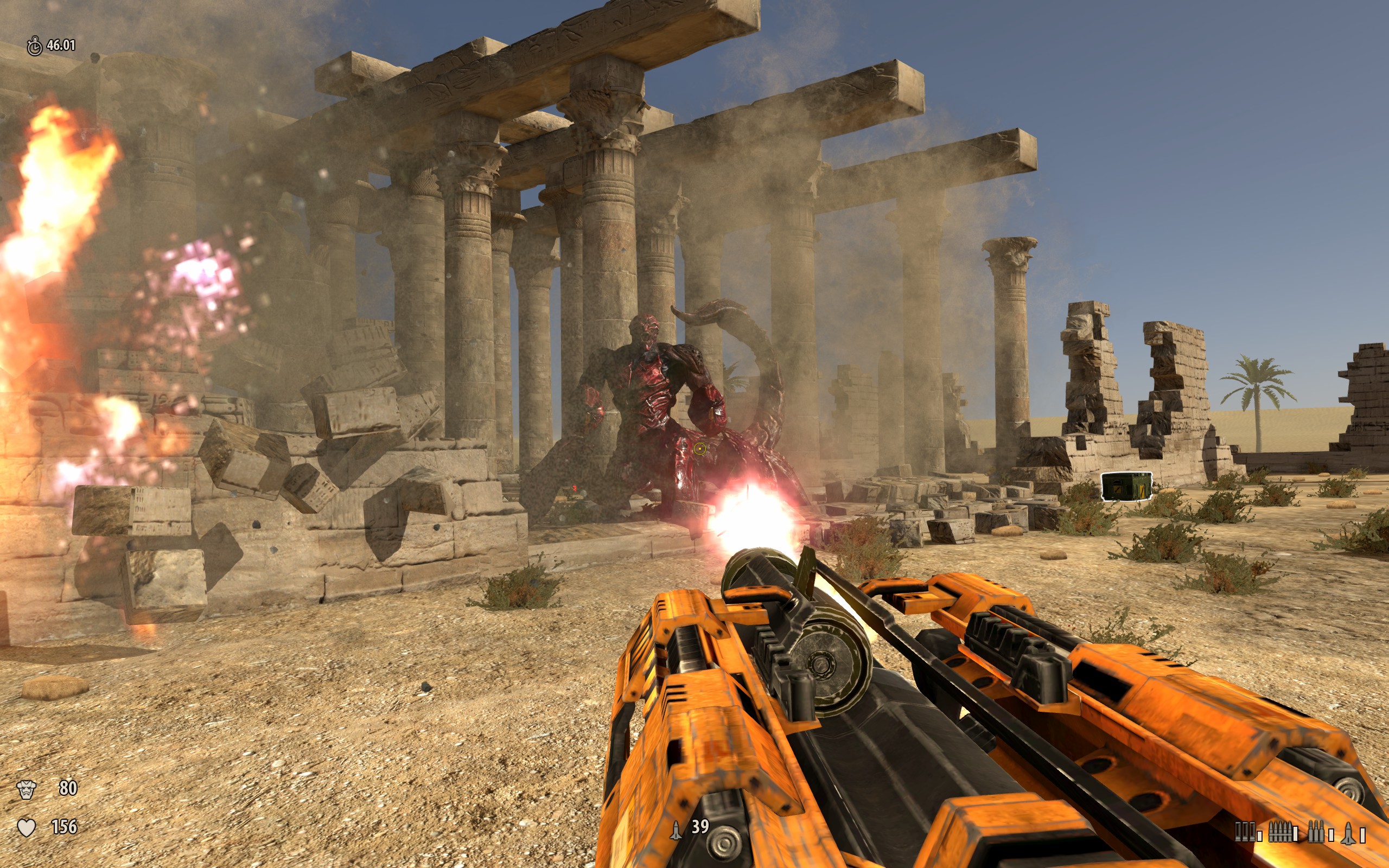 The Serious Sam series is back for its third main (though sixth overall) outing. Running on the new Serious Engine 3.5, Serious Sam 3: BFE serves as a prequel to the original First Encounter; a fact referenced in the games title, BFE standing for Before First Encounter. Set in the 22nd century, the plot revolves around a device known as the "Time-Lock;" a discovery made beneath the ruins of ancient Egypt, found to belong to an even older yet technologically advanced civilization known as the Sirians. However this discovery catches the attention of a dangerous cosmic entity known as Notorious Mental, who assaults Egypt and seizes the Time-Lock as his own, abusing its powers to create a horde of cloned beasts borrowed from various points and places in the universes history to unleash upon the Earth. Various attempts to retake Egypt and reach the Time-Lock have failed, until a new task force is sent in with "Serious" Sam Stone on board, and despite being separated from his team - Sam plows forward with all the weaponry he can find.