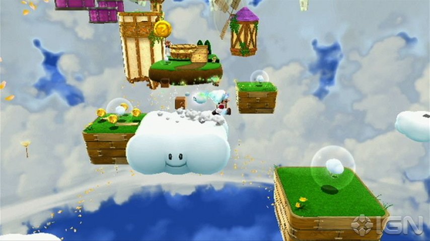 Like the original Super Mario Galaxy a second player can join the experience by pointing the Wii Remote on the screen to collect coins or fling star bits, however this time they can also collect items that are out of the reach of Mario or Yoshi, and push back enemies in advance of the hero.