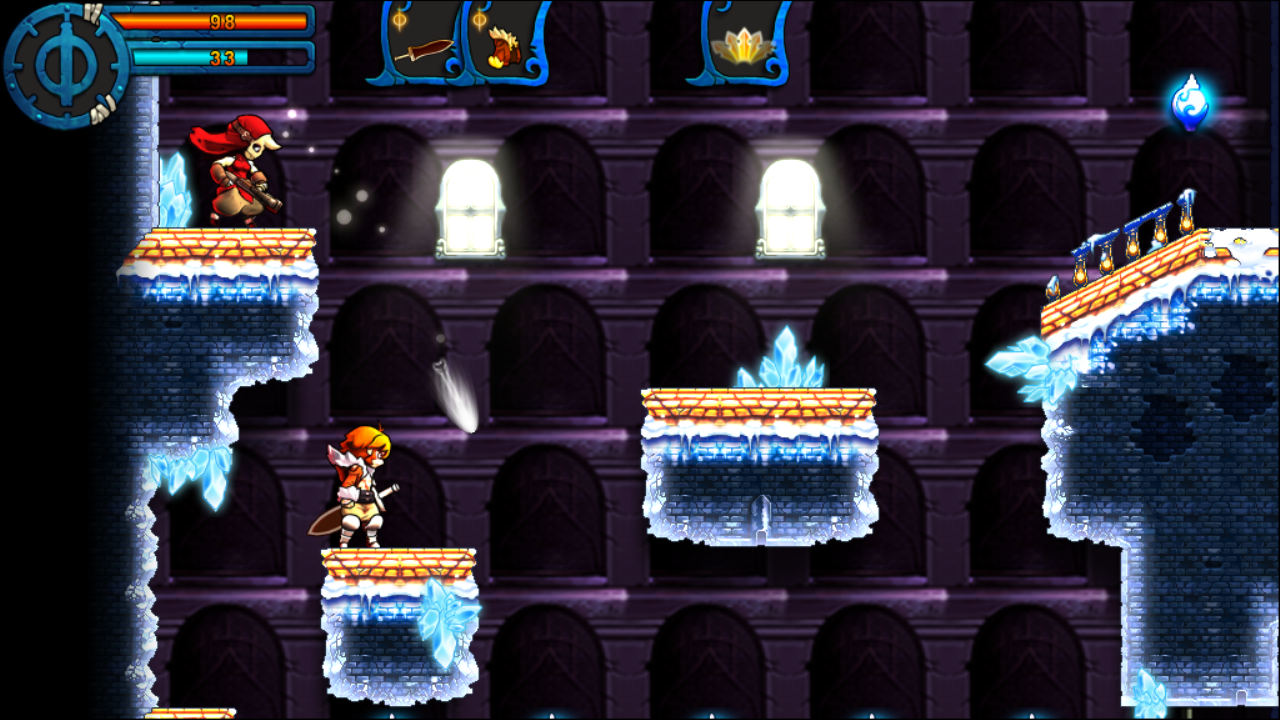 Valdis Story is an action/exploration platformer with strong ties to the metroidvana genre. Thematically it is set in a world engulfed by a war between beings known as angels and daemons. Those are lead by the dark goddess Myrgatoand and her twin sister, Alagath the goddess of light. As angels and daemons are created by human souls, they are targeted by both forced for reinforcements and are vastly dwindling in numbers. The stage where the game unfolds is a submerged and frozen city, which can be explored by the player. As the player progresses in the game, more facets of the history of the city are unfolded and the story of the war between angels and daemons becomes more complex than first thought.