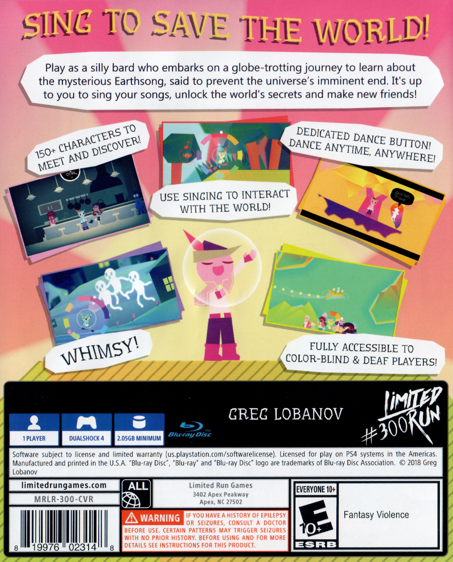 A musical adventure where you use singing to save the world! Play as a silly bard who embarks on a globe-trotting journey to learn about the mysterious Earthsong, said to be able to prevent the universe’s imminent end. Along the way there’s a huge cast of characters to meet, puzzles to solve and songs to sing!