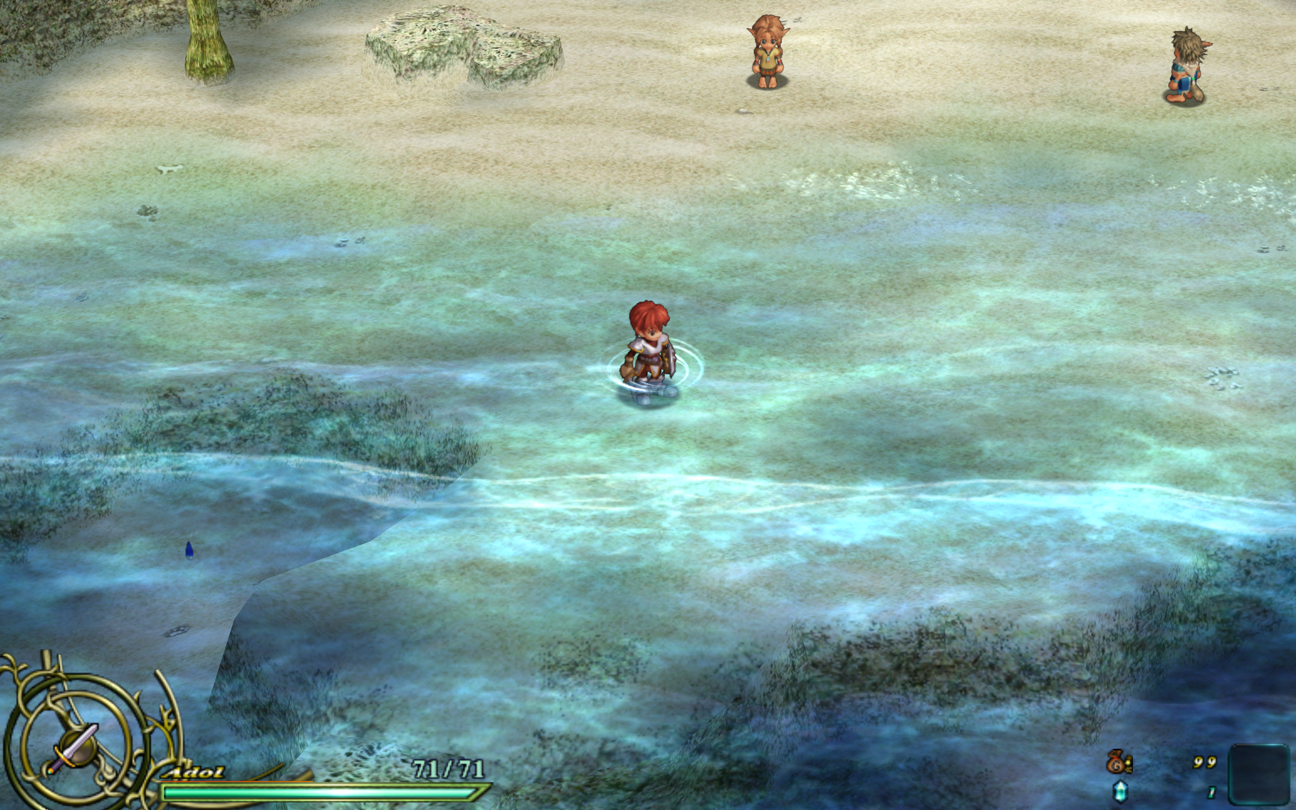 The Ark of Napishtim is an action role-playing game set (for the first time in the series) in a fully 3D environment. The game world is seamless, with transitional overworld areas connecting dungeons and settlements. Much of the game takes place in hostile areas, where the protagonist engages in fast-paced action combat against regular enemies and bosses. Like its immediate predecessor, the game abandons the "bumping" combat style of the earlier installments, opting instead for the more common active combat. Adol can execute regular attacks and jump, as well as combine those for upward and downward slashes, dash attacks, and longer jumps. Experience points and money are awarded for defeating enemies, and leveling up is fully automatized. Armor and accessories can be found in treasure chests or purchased.