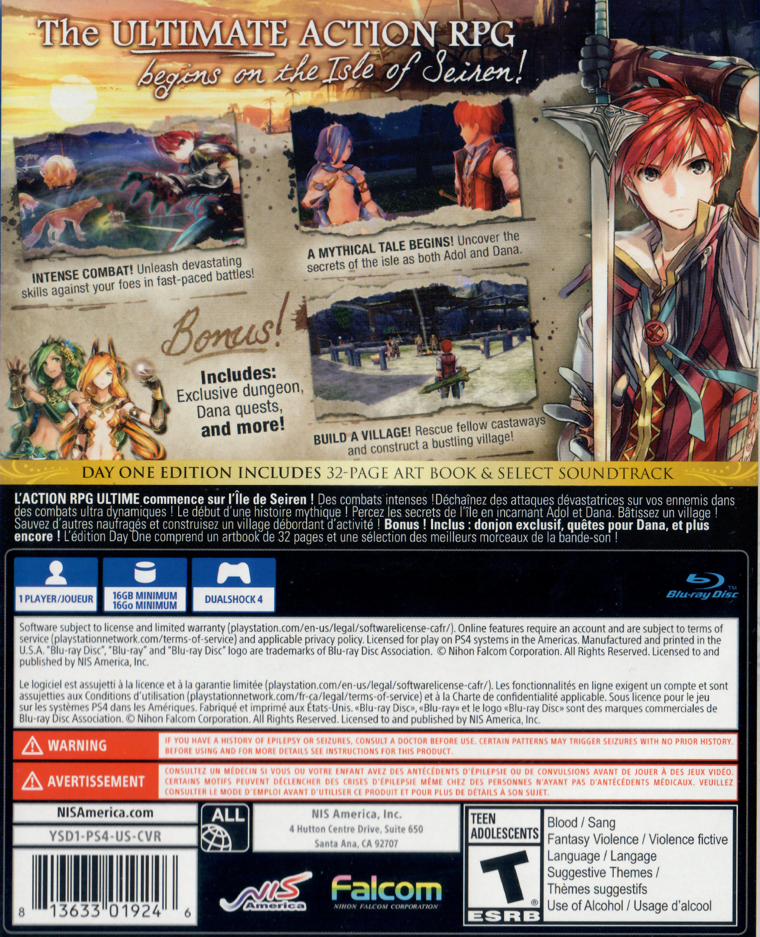 Ys returns with a brand new adventure for the first time in 8 years! Adol awakens shipwrecked and stranded on a cursed island. There, he and the other shipwrecked passengers he rescues form a village to challenge fearsome beasts and mysterious ruins on the isolated island. Amidst this, Adol begins to dream of a mysterious blue-haired maiden living in an unknown world. Join Adol as he unravels the riddle of the cursed isle and the blue-haired maiden Dana in Ys VIII: Lacrimosa of DANA!