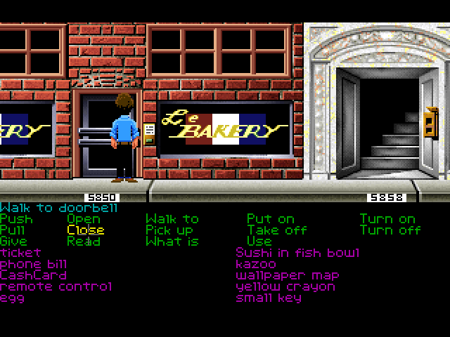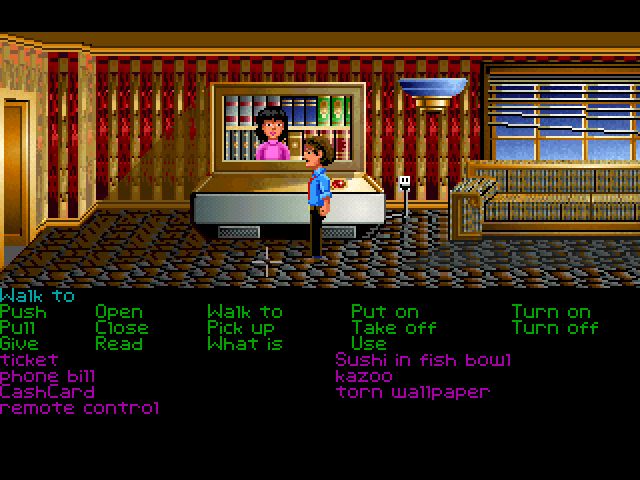 Zak McKracken and the Alien Mindbenders is a third-person puzzle-solving adventure similar in gameplay to Lucasfilm's breakthrough title Maniac Mansion. The player chooses verb commands (Open, Pick Up, Give, etc.; there are no Look or Talk commands) to interact with the game world. The game features up to four controllable protagonists; it is possible to switch between them at any time after they have been introduced, and also exchange inventory items if the characters are in the same location. The game can be described as a "globe-trotting" adventure, since the heroes are required to travel to different exotic countries and even leave the Earth for a while in order to complete it. Some of the puzzles are optional or can be solved in different ways.