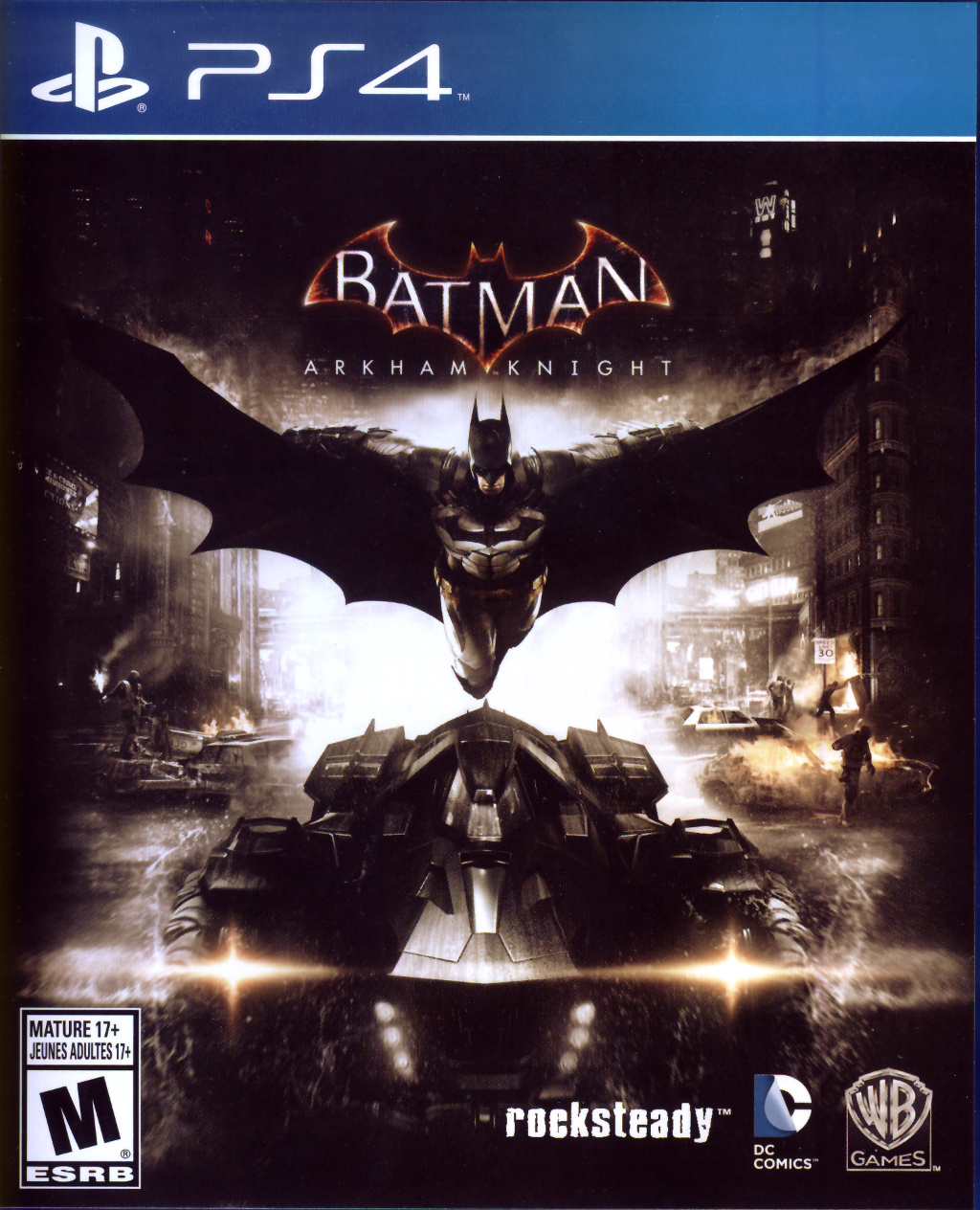 Batman: Arkham Knight is an action-adventure and the fourth main game in the Batman: Arkham series based around the DC Comics superhero Batman. It marks the return of the original developer of the first two games. It is set one year after the events of the second game Batman: Arkham City. It starts when Scarecrow forces an evacuation of Gotham City by threatening to release a fear toxin. Many familiar characters and foes are present. The title refers to a new villain called Arkham Knight who backs Scarecrow. He wears a militaristic Batsuit and an Arkham symbol on his chest.