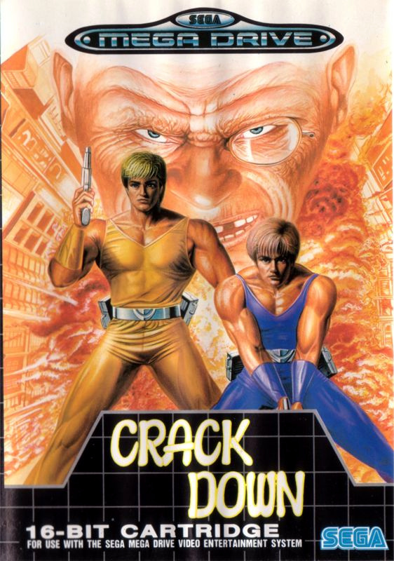 Crack Down is a time-limited action game. The two heroes, Ben and Andy, have to get through the levels as quickly as possible placing bombs on X marks scattered around the levels. Although the levels are heavily defended, the player has an array of weaponry including a cannon, machine gun, and superbombs.