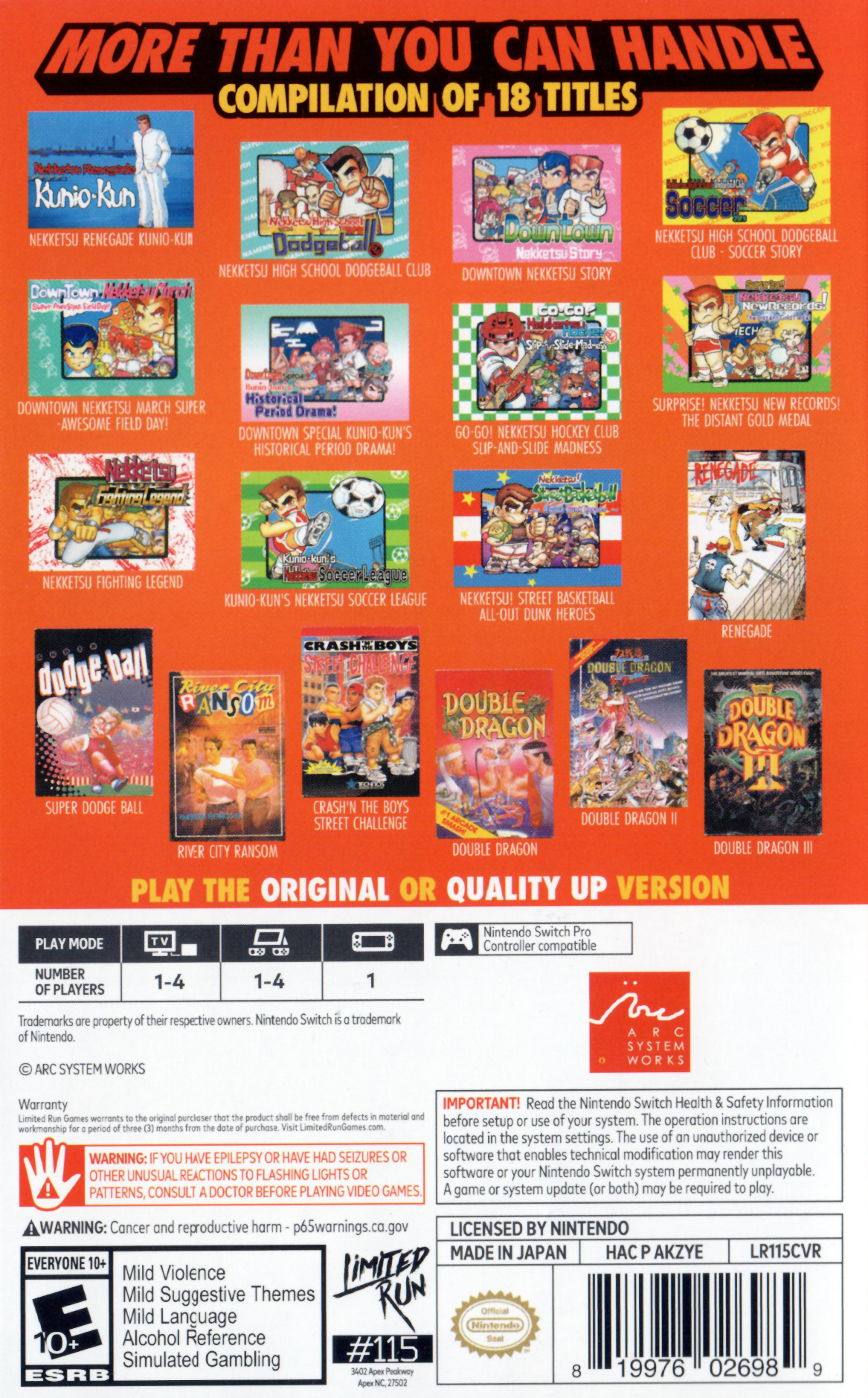 A compilation of all NES and Famicom Double Dragon & Kunio-Kun titles, with new localizations for the famicom games.
