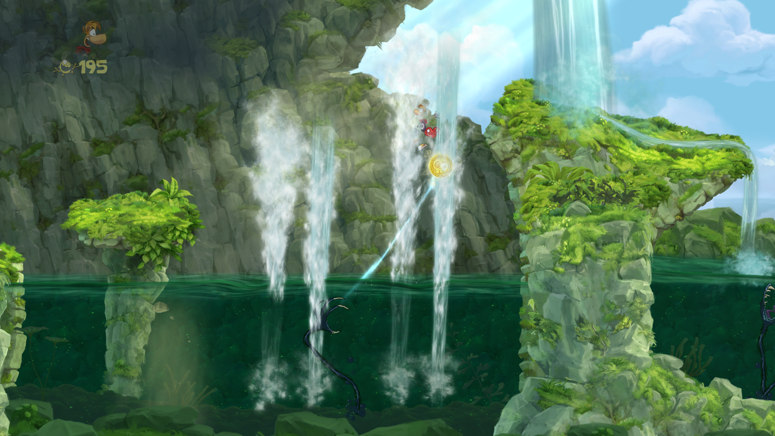 The game's atmosphere, however, is different from the original game and has a very "wacky" feel instead. The main objective of each level is to rescue as many Electoons as possible similarly to the original game. There's also Lums from Rayman 2 which act as the game's currency, but each area is heavily guarded by creatures from the Land of the Livid Dead as well as many other enemies. There's also a multiplayer option with up to four players which feels very similar to that of contemporary Mario games. It is possible to play as Rayman, Globox and two Teensies on the Wii.