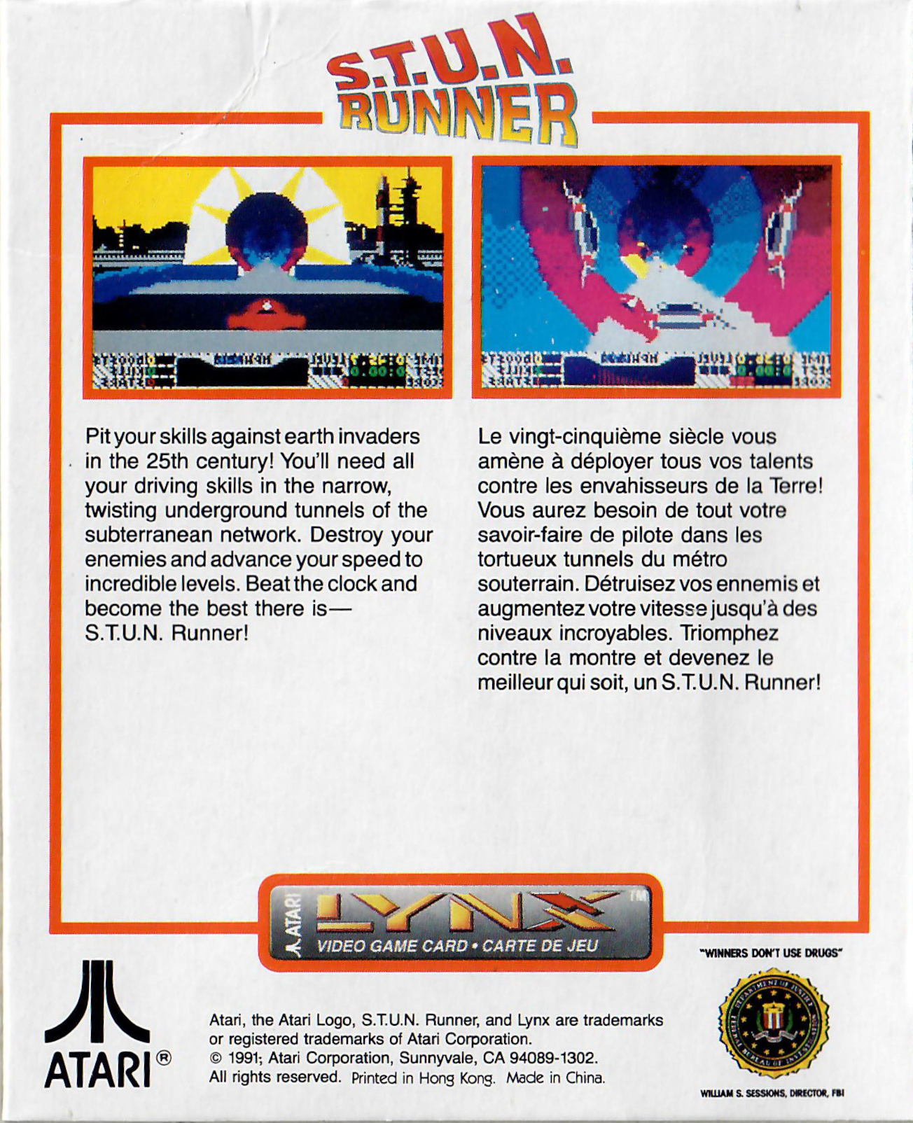 It's 2492 and you must pilot your Sub-Terranean Underground Network (S.T.U.N.) craft at speeds over 900 miles per hour through a series of courses to retain your title as S.T.U.N. Runner, completing each course before time runs out.