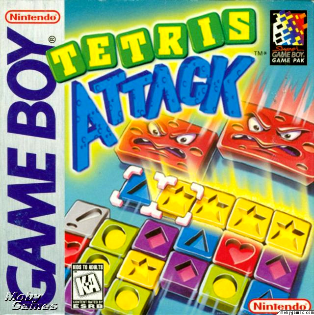 Tetris Attack is a fact-paced action puzzler featuring the colorful cast of characters from Yoshi's Island. A stack of blocks continually rises from the bottom of the screen, and the player controls a cursor which can swap any two blocks horizontally. Make a row or column of three or more and they'll clear, potentially creating combos from new blocks falling to take their place. Combos will send large garbage blocks to your opponent, which must be eliminated by clearing a piece that is touching it, turning it into normal blocks.